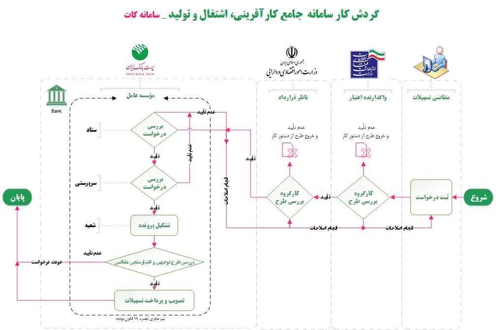 متقاضیان با مراجعه به سامانه کارآفرینی، اشتغال و تولید (کات) به آدرس https://kat.mefa.ir نسبت به ثبت درخواست و بارگذاری مدارک ومستندات در سامانه اقدام می نمایند.